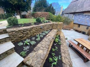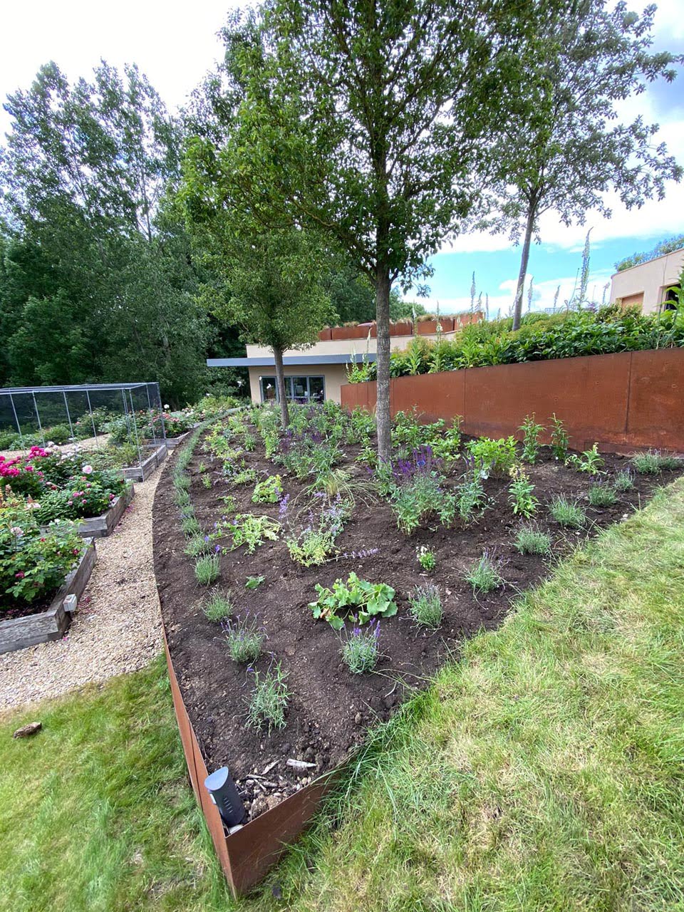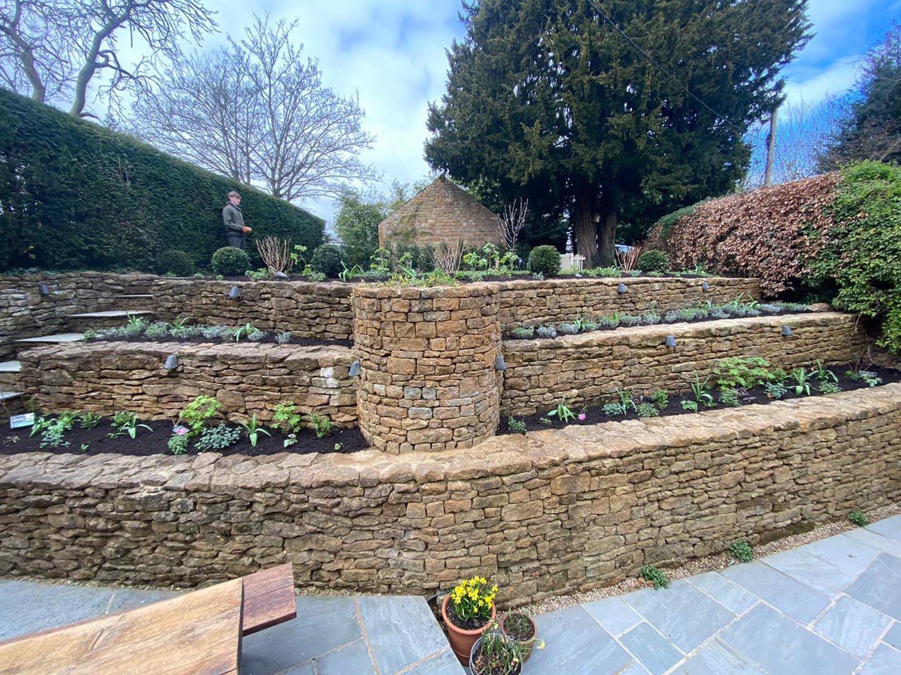 Terraced borders with young planting