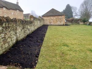New flowerbeds cut in to the lawns in Great Tew, planting to follow in the spring