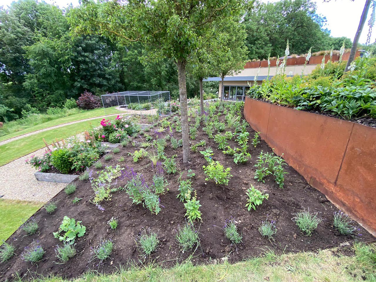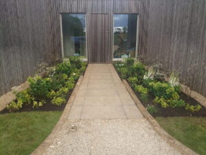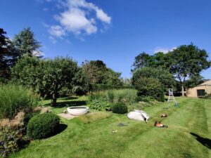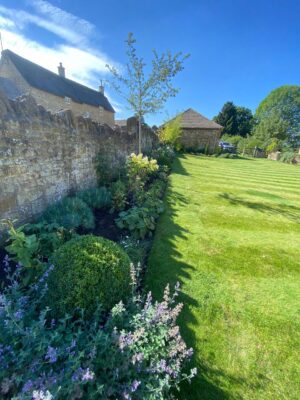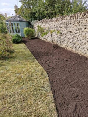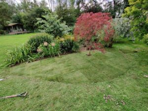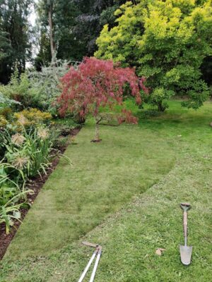 Reducing flowerbeds to lawn with careful turfing Long Compton