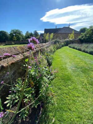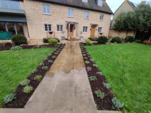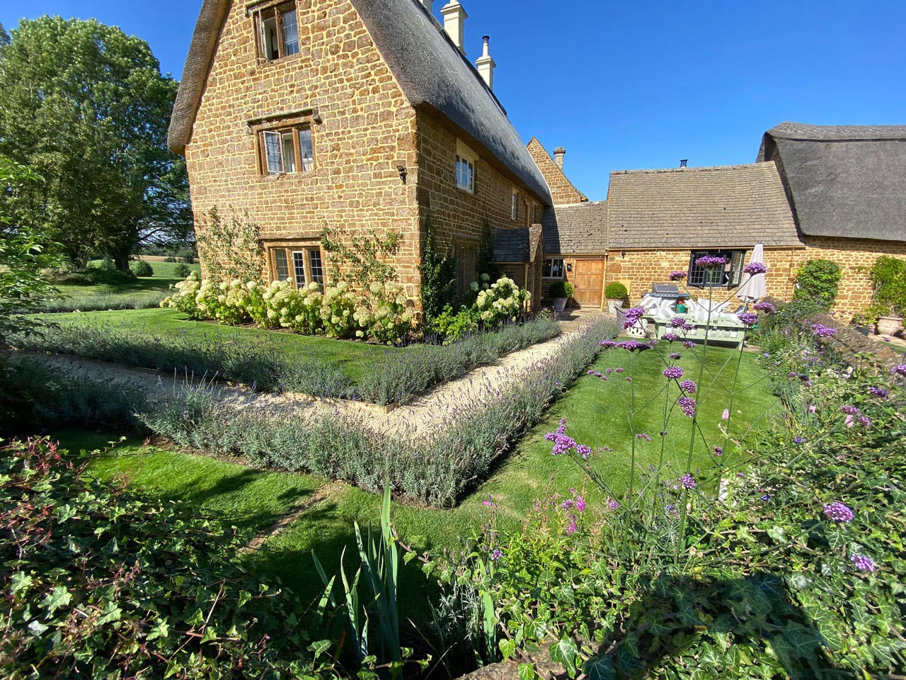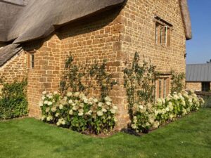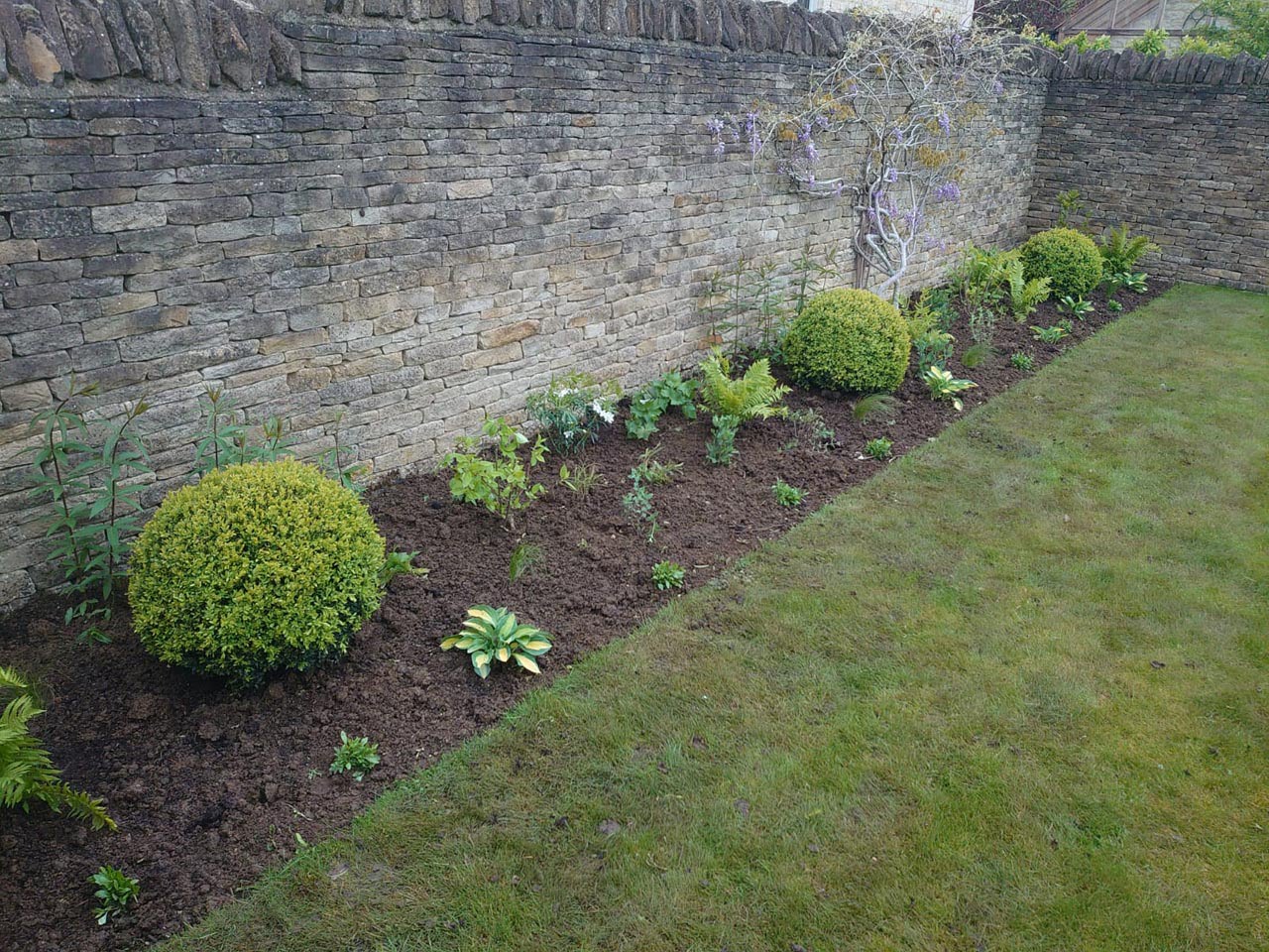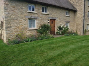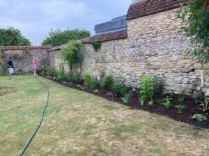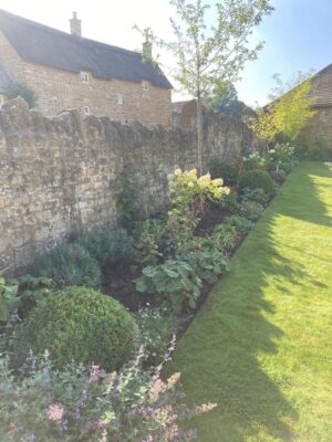 Installing new borders and planting around the cottage and along the stone wall Great Tew The Cotswolds